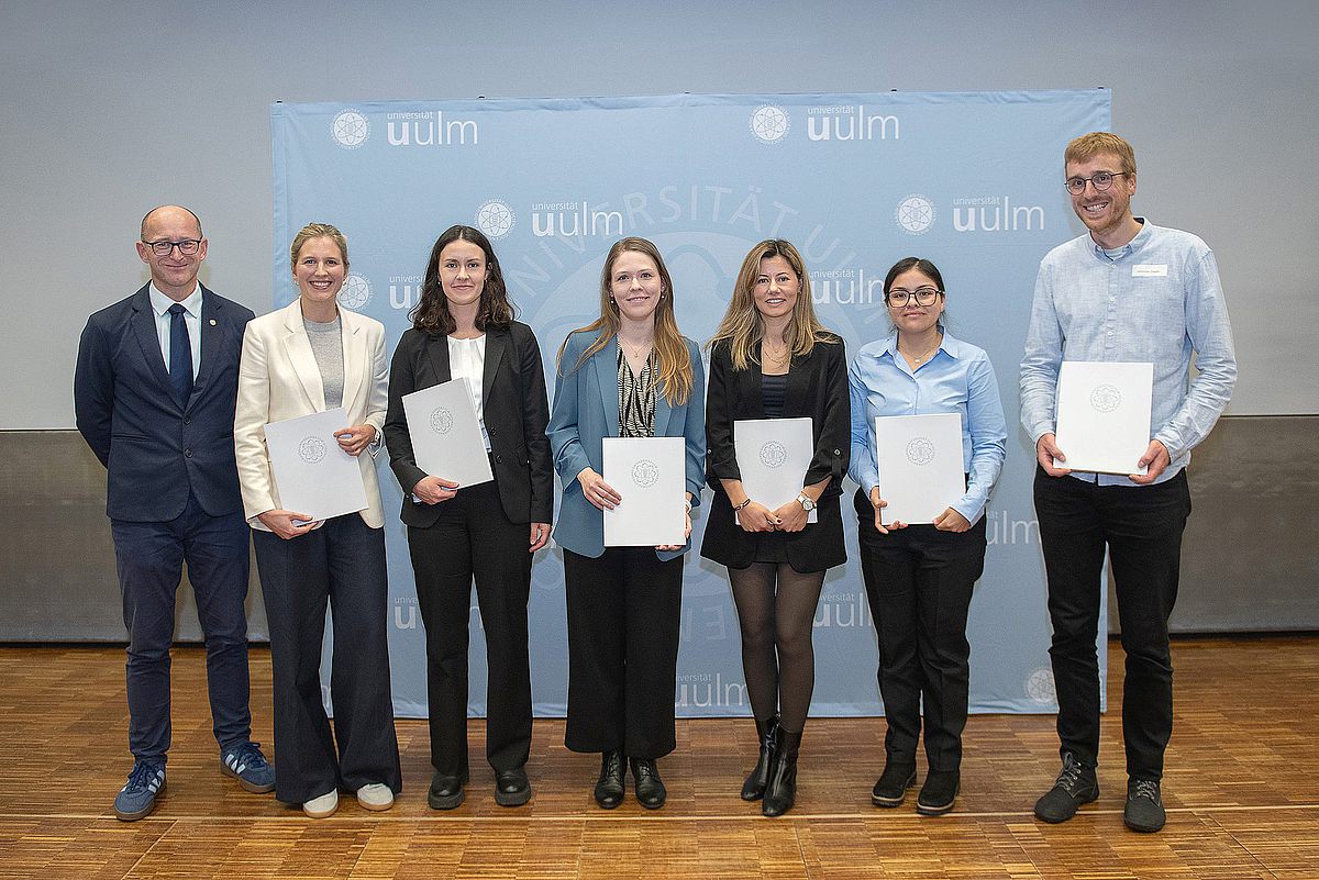 Wie man die eigene Forschung möglichst allgemeinverständlich auf den Punkt bringt und dabei das Publikum begeistert, das zeigten eindrucksvoll die beiden Siegerinnen des Young Researchers’ Science Day der Universität Ulm. Den ersten Platz – dotiert mit 50 000 Euro – erreichte Dr. Julia Téoule mit ihrem Vortrag zur Endometriose. Die Fachärztin an der Ulmer Universitätsfrauenklinik begleitet Paare mit Kinderwunsch und forscht dazu, wie sich die Fruchtbarkeit bei Frauen mit Vorerkrankungen besser erhalten lässt. Mit dem Preisgeld will die klinische Forscherin immunologische Biomarker entwickeln, die es möglich machen, diese schmerzhafte Erkrankung frühzeitig zu diagnostizieren. Dies könnte den erkrankten Frauen nicht nur einen jahrelangen und oft ergebnislosen Ärztemarathon ersparen, sondern den Betroffenen auch helfen, trotz Krankheit eigene Kinder zu bekommen. Zweite Siegerin wurde Dr. Christine Schillings. Die Postdoktorandin aus der Abteilung für Klinische und Gesundheitspsychologie, die 30 000 Euro bekommt, pitchte zur Verbesserung der Körperwahrnehmung bei Stress. Die Wissenschaftlerin setzt in ihrem Projekt, das sie mit dem Fördergeld umsetzen möchte, auf die mobile Stimulation des Vagusnervs, der Teil des Parasympathikus ist, und eine Schlüsselrolle bei der Selbstwahrnehmung spielt.